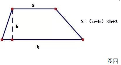 下面我们再来看看梯形、正方形、平行四边形、长方形和三角形的公式有什么内在联系?让我们先看看梯形的面积公式,如图四:S=(a+b)*h/2,即:(上底+下底)*高/2。大家都知道,不赘述。