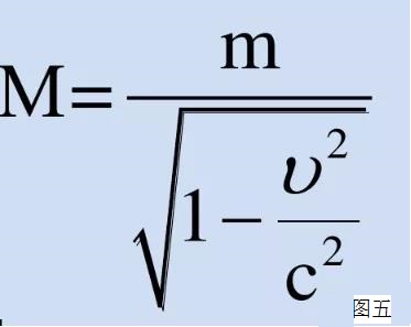 如图五,这是相对论质量的公式。从这个公式可以看出,在宏观低速时,因为速度相对于光速是趋近于零的,因此分母趋近于1,运动物体的质量近似为静止质量。因此,牛顿第二定律是不精确的,实际是个宏观低速近似值。