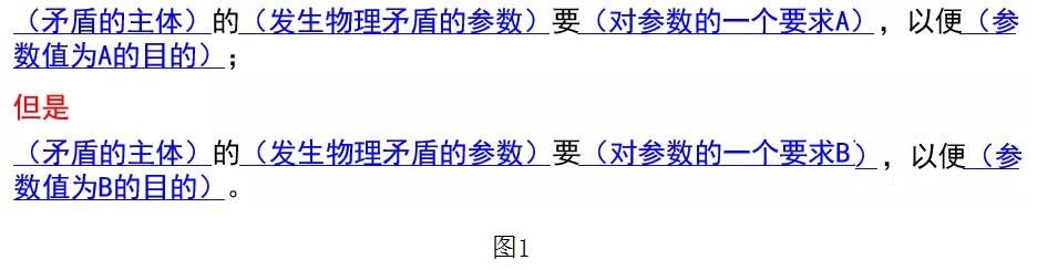 在设计的过程中,我们会遇到大量的“物理矛盾”(这是发明问题解决理论中特殊界定的一个概念),即:对同一个对象的某个特性提出了互斥的要求。例如,某个对象既要大又要小,既要厚又要薄,以舰载机为例,舰载机的机翼既要大,便于提供足够的翼展面积,又要小,便于在航空母舰有限的空间停靠足够多的舰载机。所有这类问题,都可以用以下“公式”表达,如图1: