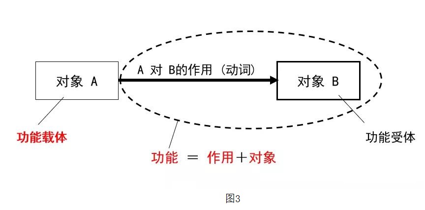 产品在融合功能的过程中,有短期进化原则、中期进化原则和远期进化原则,我们这里只谈短期进化原则。产品在功能的融合过程中往往优先融合产品作用对象一致的功能。请允许我再回顾一下什么是功能。什么是功能呢?功能是一个对象(A)作用于其他对象(B)、并改变其(B)参数的行为;如图1所示。
