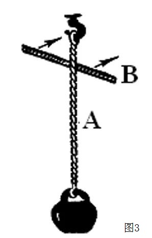 以上问题可以简化为如下问题:挂有重物的钢索A需牢固地与钩子相连。平面上有一根钢索B与其垂直相交,钢索B不停地运动。如何使钢索B持续运动,不切断钢索A,也保证自我完整?如图3: