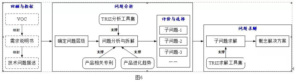 不得不承认上述案例是一个非常好的案例,但是这个案例和实际解题差距比较大,主要是这个课题省略了很多“工作”,而这部分“工作”恰恰是解题所不可或缺的内容。图6是我们在“解题咨询”中一个简化的流程图,供参考: