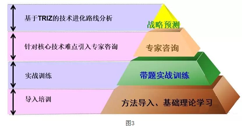 由于篇幅限制,该文重点谈导入培训及实战训练的推广(该金字塔的第一层和第二层),即:知行合一的TRIZ实训体系。