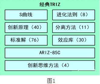 什么是TRIZ?我们通常把阿奇舒勒老先生提出的TRIZ理论称为经典TRIZ。经典TRIZ的范畴是比较明确的,主要包括(如图1):S曲线、进化法则、四个解题工具和ARIZ方法,最后还有一部分是创新思维。