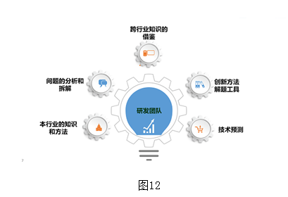 对于企业,部分较难的课题,特别是行业难题、卡脖子问题,可以引入技术咨询并逐步打造自身现代化的研发体系。对于研发水平的提升,特别是对发明问题的解决,重点要打造五个基础能力。如图12: