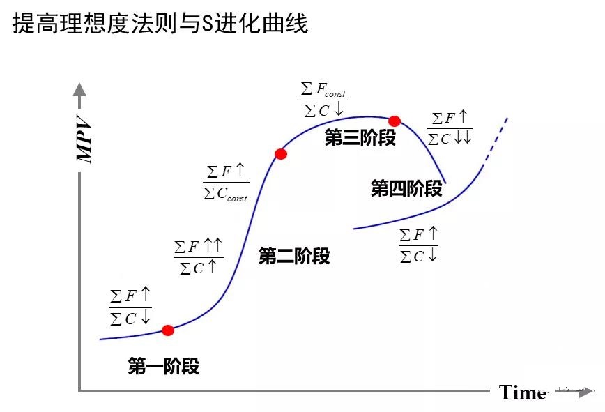图中的F是指有用功能,而C是成本。成长期是四个发展周期当中唯一一个允许提高成本的周期。