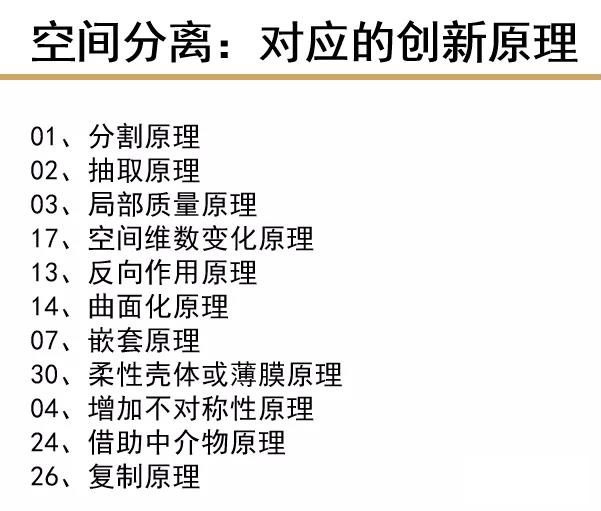 物理矛盾确定了,可以确定对应的创新原理。其实,明确了思路,我们可以选择技术方案。简单的方案可能通过常识即可获得,而复杂的方案可以参阅创新原理: