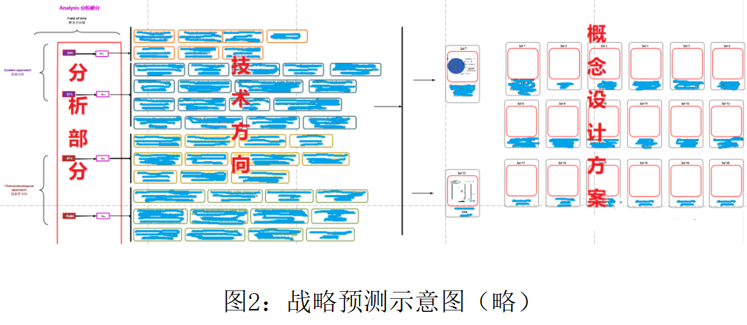 上述技术框架是针对技术目标的战术预测图谱。基于这个图谱还要进一步进行概念设计,并提供原理设计草图。产品预测整个体系的最终目标是让研发团队基于科学的方法论,全面遍历技术方向的前提条件下,选择最优的解决方案。提供原理设计草图一方面是为了分别阐明同一技术方向的多种技术实现手段,同时,也是要把整个产品预测落地,推动研发单位最终寻找到可行解决方案的重要一步。
