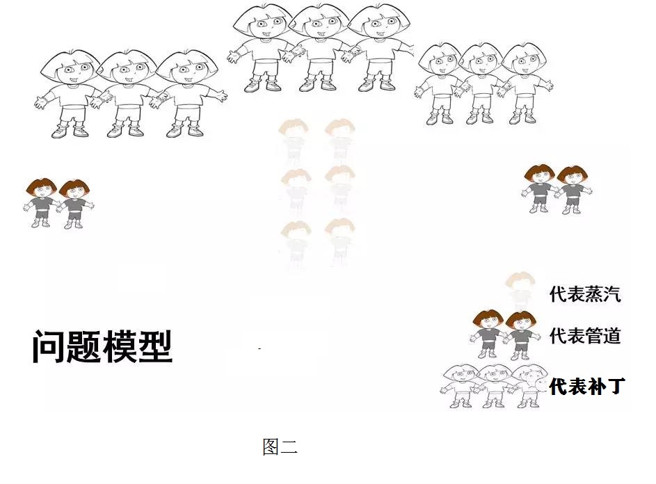代表蒸汽的小人会推动整个代表补丁的小人向上,阻碍了代表补丁的小人与代表管道的小人“牵手”。这是问题模型。